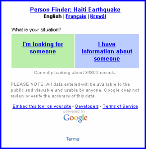 Tim Schwartz, a 28-year-old artist and programmer in San Diego, quickly emailed “all the developers I’d ever worked with.” In a few hours, he and 10 others had built www.haitianquake.com, an online lost-and-found to help Haitians in and out of the country locate missing relatives. The database, which anyone can update, was online less than 24 hours after the quake struck with more than 6,000 entries. The New York Times, Miami Herald, CNN and others launched similar efforts. Two days later, Google (Nasdaq: GOOG) had a similar tool running, PersonFinder.
