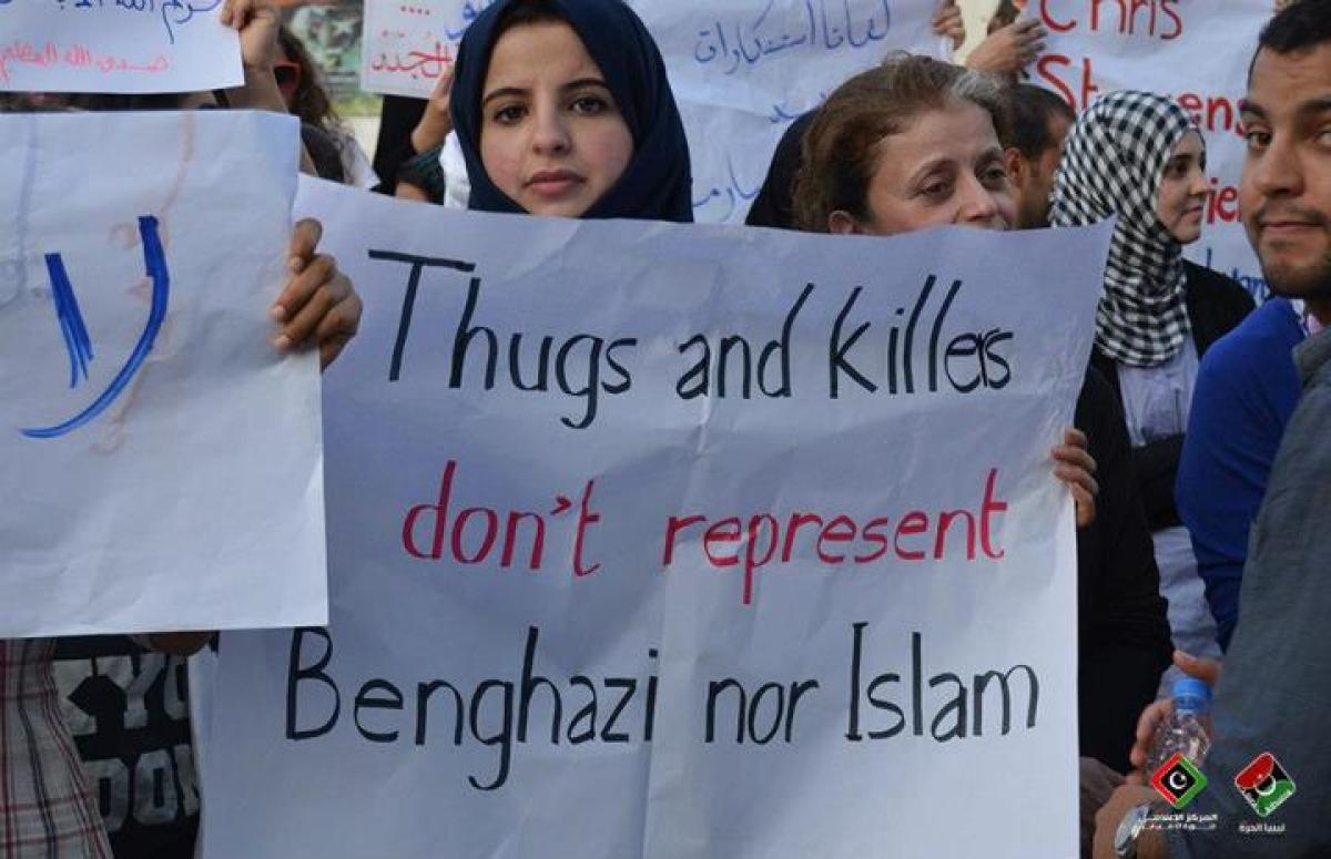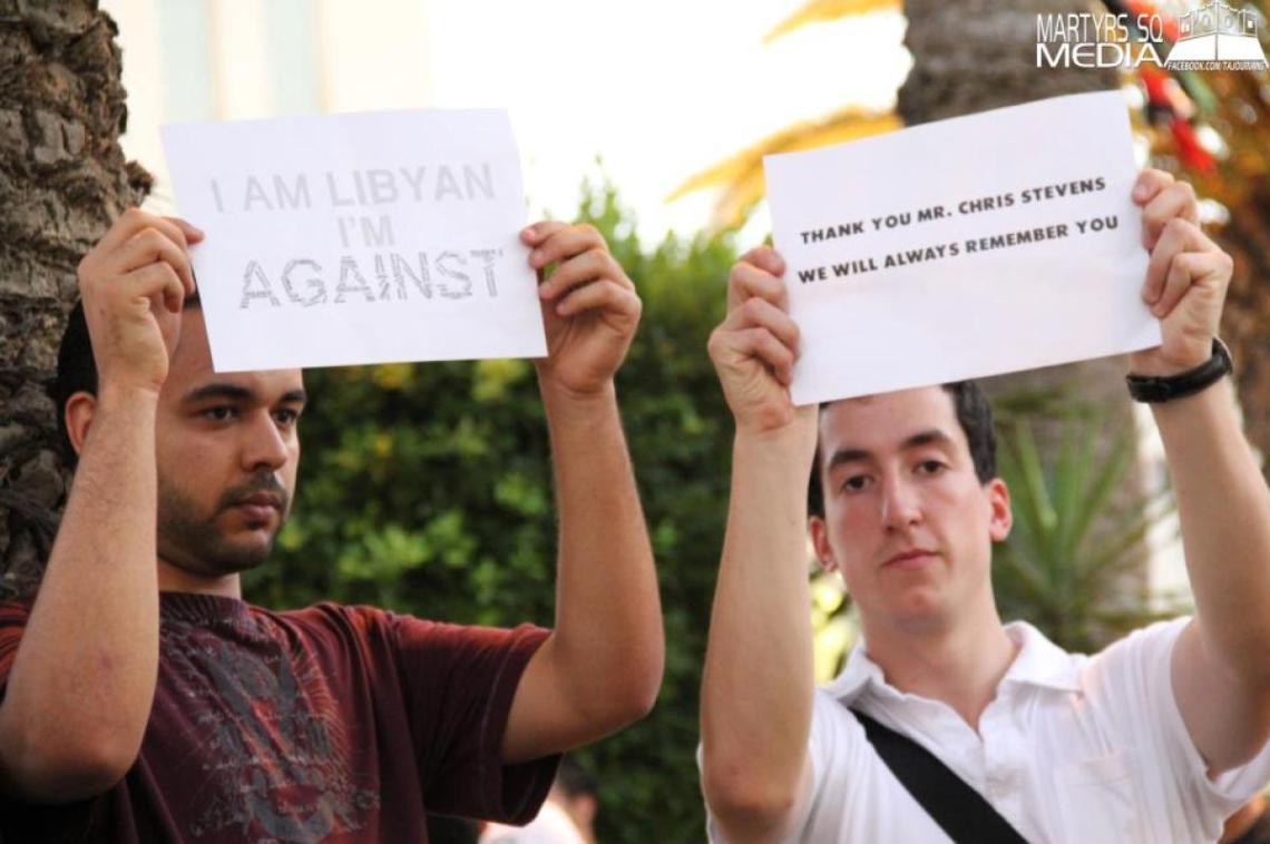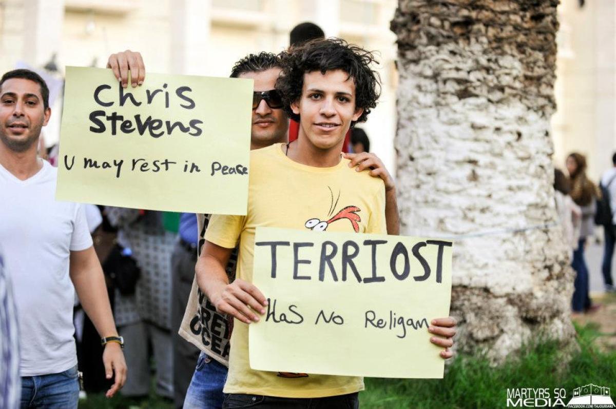 On the heels of the deadly attack on the U.S. Consulate in Benghazi, Libya, protesters took to the streets of Tripoli to offer condolences for the death of U.S. Ambassador Chris Stevens and express their disapproval of the protests against a film that demonstrators deemed blasphemous to the Prophet Muhammad. Bearing signs that read “RIP Christopher Stevens” and “This is not how we thank who helped us when we needed help the most,” among other anti-terrorist sentiments, the demonstration maintained its message of peace and the belief that not all people in Libya agree with those who attacked the consulate.