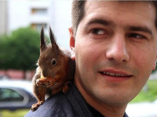 One day, a group of soldiers in Belarus found a baby squirrel while out on patrol. The squirrel was in need of urgent care, so they brought it back to their commanding officer. The officer brought it inside and began to care for it. He fed it and warmed it every hour, making sure the little squirrel was slowly getting stronger. Once the the squirrel began to act healthy, the squirrel didn’t want to leave the officer’s side. The unique duo became inseparable. When the officer left the army, he took the squirrel with him. Now, the man works as a cab driver and brings his little friend along with him – the squirrel would have it no other way. Check out the photos below…